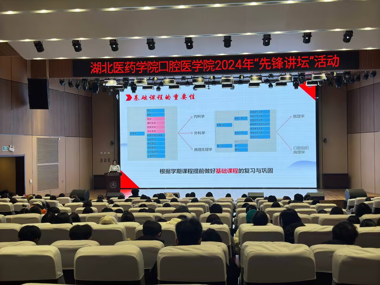 (通讯员 梅显运)12月27日下午,ok138cn太阳集团529在公卫大楼一楼学术报告厅举办2024年“先锋讲坛”活动。ok138cn太阳集团529党委副书记吴卉、ok138cn太阳集团529团委副书记梅显运、辅导员徐萍萍、曾玲以及300余名口腔学生参加本次活动。
