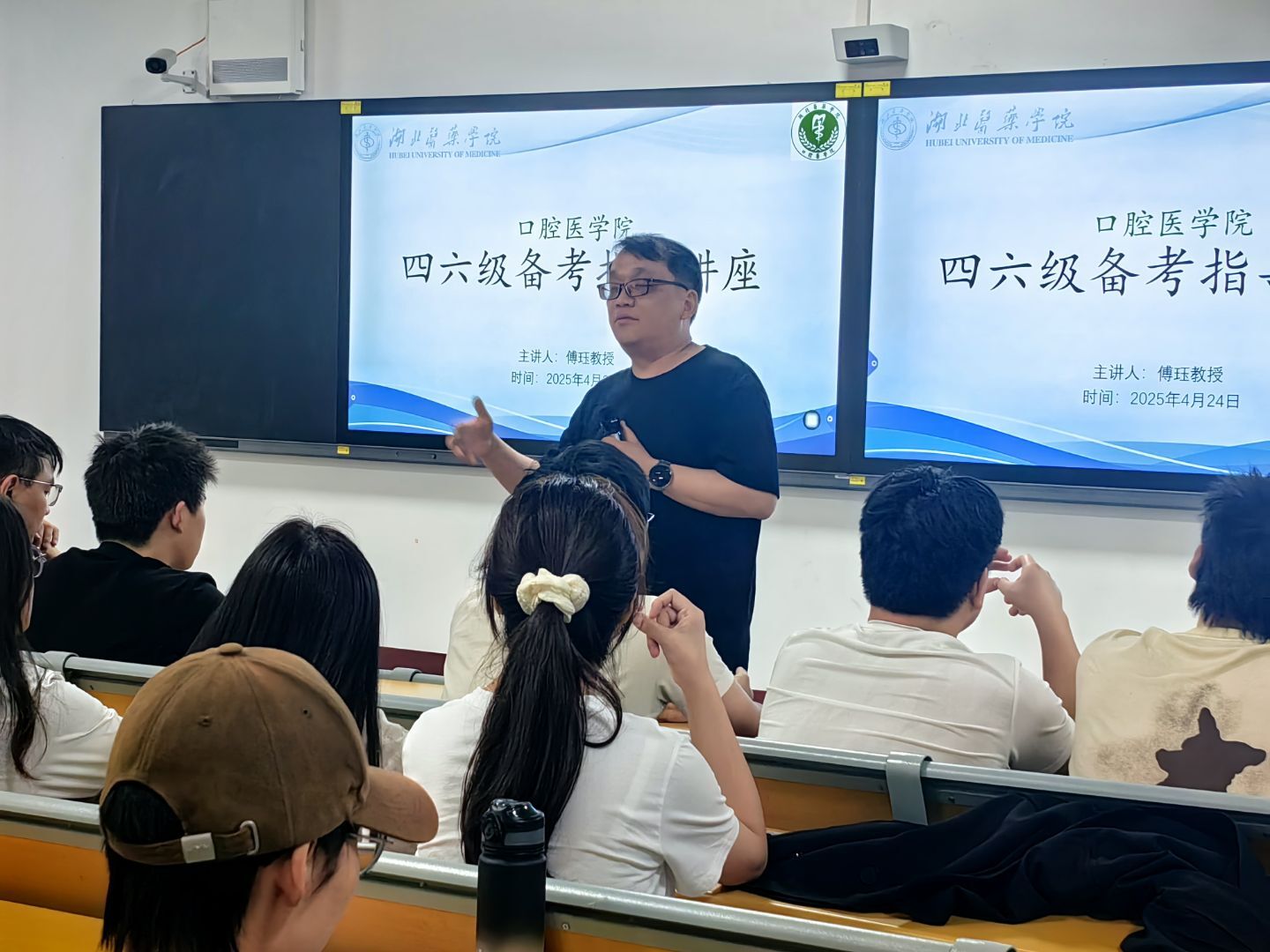 傅珏结合多年教学经验,深入剖析了四六级考试的题型特点、备考策略和应试技巧,他还重点分享了词汇记忆的高效方法,包括词根词缀记忆法和联想记忆法等。傅珏深入浅出的讲解赢得了同学们的阵阵掌声,同学们反响热烈,纷纷表示收获颇丰。