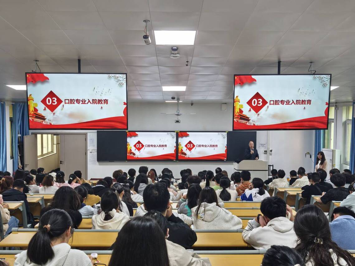 学院党委书记秦赤子向新生们系统介绍了学院的整体发展历程与现状,勉励大家夯实学业根基,在奋斗中绽放青春光彩。新生代表2025级口腔班王安妮表态将心怀感恩、勤奋学习,在学校这个温暖的大家庭里茁壮成长。